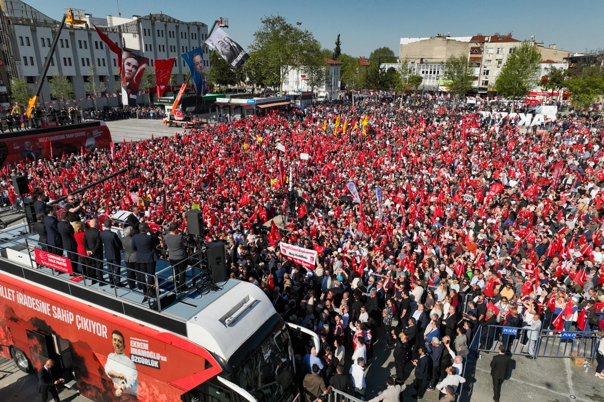 “Sandık geliyor. Birileri gidiyor, birileri geliyor. Bir şeyin gidişi bu meydanlardan belli. Birilerinin gidişi, sokağa çıkamamalarından bir gün aranıza katılamamalarından, karşımıza çıkamamalarından belli. Anayasa ‘ara seçim’ diyor. Sekiz yer var. Yedi seçim bölgesi. Biri Can Atalay’ın Hatay’ı. Afyon, Kırıkkale, Adıyaman, bu tarafta Kocaeli, İstanbul birinci bölge. Bunların hepsinde son seçimde AK Parti önde. Şimdi diyoruz ki ‘Getir sandığı, millet söylesin sözü, sen etme artık gölge.’ Sandıktan kaçıyorlar. Sonuna kadar kovalayacağız. O sandık gelince işte böyle kimse geride kalmayacak. Hiçbir çocuk okula boş beslenme çantasıyla ya da bir kuru ekmekle, bir parça peynirle, bir yumurtayla gitmeyecek. Herkes okula dolu ve eşit bir beslenme çantasıyla gidecek. Öğlen okulda her öğrenciye aynı üç kap sıcak yemek verilecek. Bütün öğrencilere içilebilir, temiz okul suyu bedava olacak. Zil çalınca bir çocuk koşup parasıyla kana kana temiz su içerken, öbür çocuk gidip ağzını tuvalet musluğuna dayamayacak. Eğer böyle bir eşitsizliğe sessiz kalırsak, engel olamazsak bize de Allah iktidarı nasip etmesin. Bu haksızlığı yapanları da Allah bir gün daha iktidarda tutmasın. Cumhuriyet yurtlarıyla üniversite öğrencilerini kimsenin insafına bırakmayacak, hiçbir cemaatin kucağına itmeyeceğiz. Her mahalleye devlet kreşleri açacağız. Aynı belediyelerimizin açtıkları gibi. Kadınlar çocuklarını kreşe bırakabilecekler. Sosyal hayata, çalışma hayatına katılabilecekler. Eğer bir kadın bir sebeple evdeyse, çocuk bakmak, hasta, engelliye bakmak yüzünden ya da biz ona iş bulamadık diye. Evde kalan kadın bir başına kalmayacak. Ömrünü güvencesizliğe bırakmayacak, evdeki bütün kadınlara sigorta yaptıracağız ve emeklilik hakkı vereceğiz. Ayrıca okullara 100 bin öğretmen, 75 bin sağlık görevlisi, 65 bin uzman çavuş görevlendirerek okullarımızı güvenli, kapısındaki uyuşturucu belasından ya da zihnini oyunlarla, başka şeylerle eline silah almış çetelerle okulun önüne gelenlerden koruyacak. Asla ve asla okulda sağlık sorunu, temizlik sorunu, hijyen sorunu ve öğrenciler arasında eşitsizlik sorunu olmayacak.”