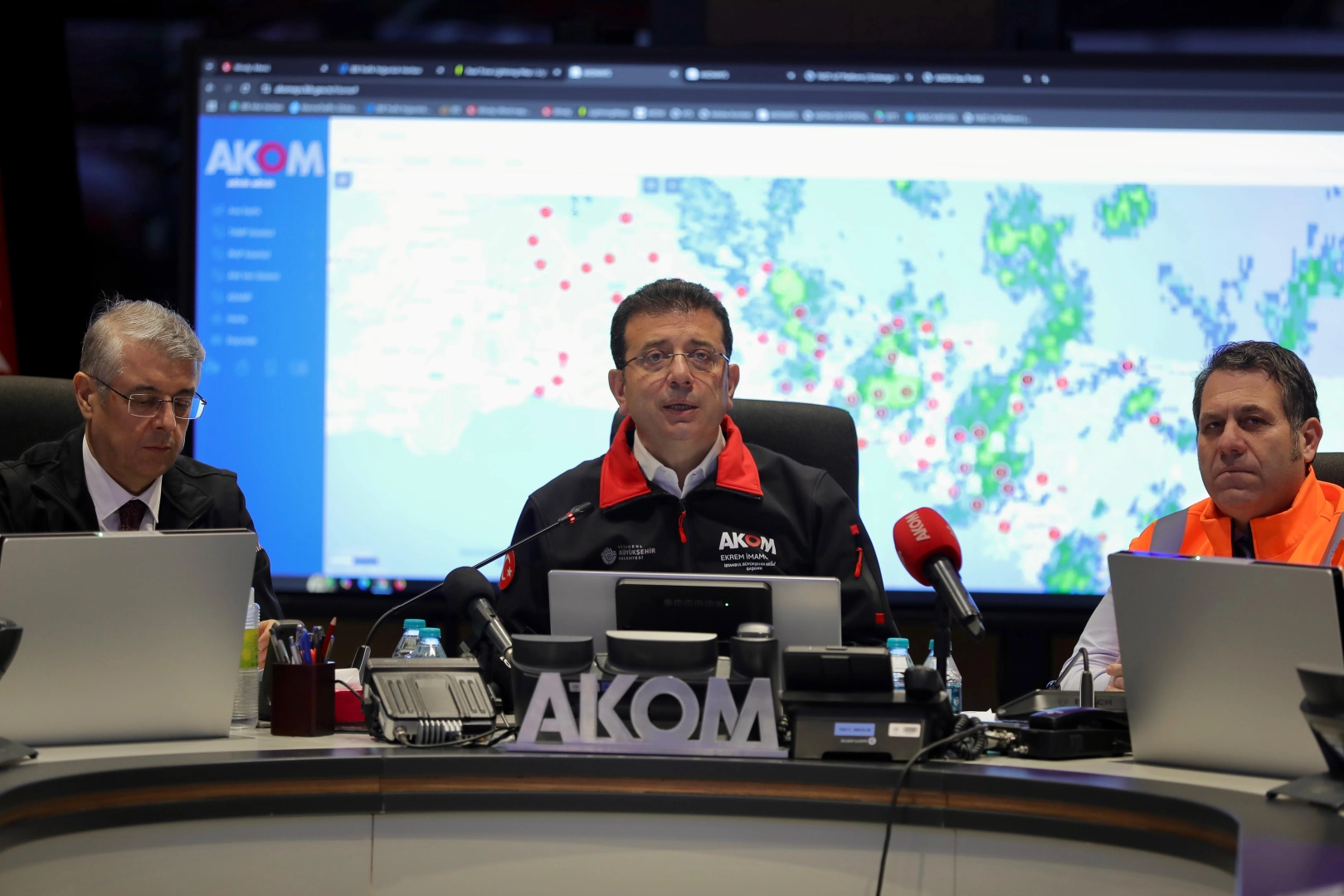 İSTANBUL (İGFA) - İstanbul’da yaşanan olumsuz hava koşullarına karşı yapılan mücadeleye Afet Koordinasyon Merkezi’nde (AKOM) tanıklık eden İstanbul Büyükşehir Belediye Başkanı Ekrem İmamoğlu, kurmaylarından ve uzman isimlerden bilgi aldı.