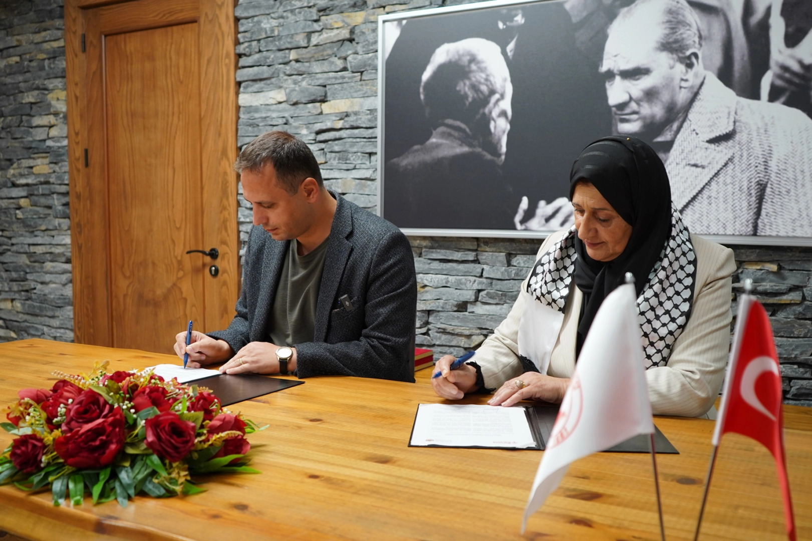 İZMİR (İGFA) - Bornova Belediyesi, Filistin’in Dura Belediyesi ile kardeş şehir ilişkileri geliştirmek üzere önemli bir adım attı. Dura Belediyesi Meclis Üyeleri Safa Rajaei ve Haneen Dudin’in Bornova’ya gerçekleştirdiği ziyarette taraflar arasında bir niyet mektubu imzalanarak dostluk ve iş birliği iradesi ortaya konuldu.