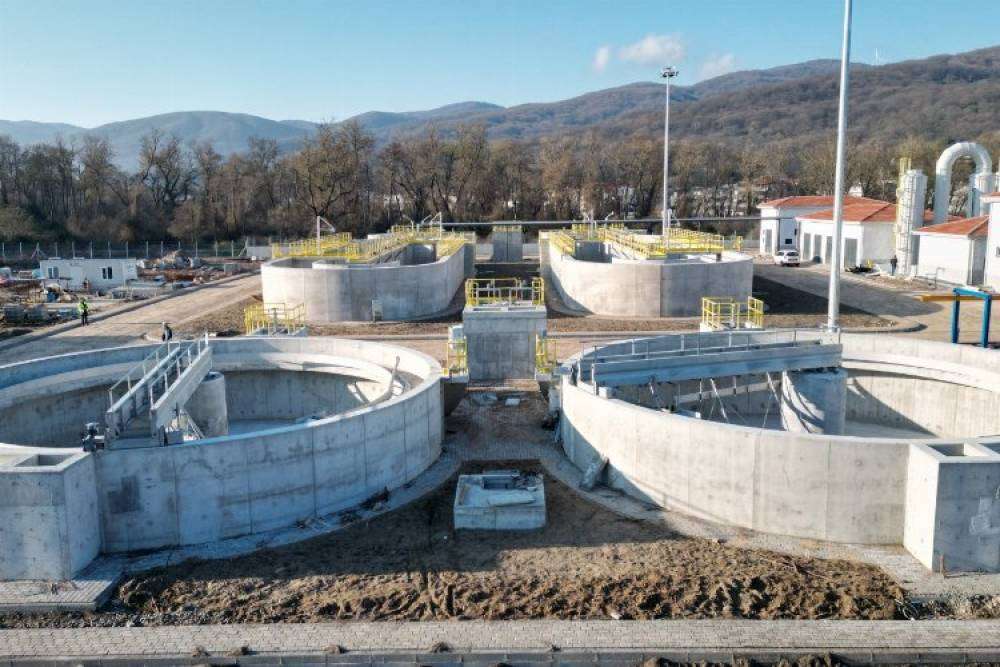 Bursa Büyükşehir Belediyesinin geçen yıl temelini attığı Karacabey Yeniköy Atık Su Arıtma Tesisinde inşaat hızla sürüyor.