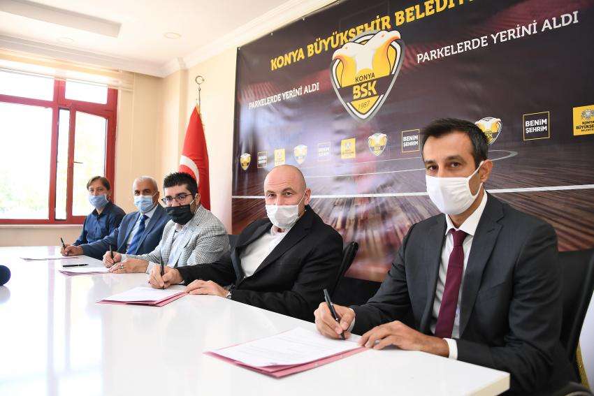 Konuşmaların ardından Konya Büyükşehir Belediyespor Basketbol Takımı ile Aziz Bekir ve Volkan Ertetik arasında anlaşmaya imza atıldı.